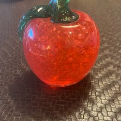 4” Red Blown Glass Apple Paperweight Applied Green Stem Teacher Present$25Suprstitn Mountain, AZ