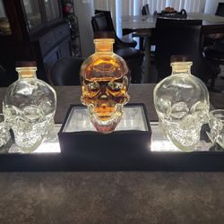Vintage Rare Facewood Barrel Fire Unique Skull Face Cristal Glass Set Of 3.$450Glendale, AZ