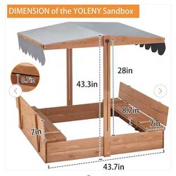 HOMMOW 3.6 ft. W x 3.6 ft. L Wood Square Outdoor Sandbox for Kids with 2 Foldable Bench Seats and Adjustable Canopy Roof,Orange$80Glendale, AZ