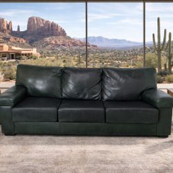 Luxury Dark Green Top-Grain Leather Sofa – Creative Leather Furniture (89”) – $4,000–$6,000+ Retail$850Tempe, AZ
