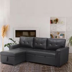 84.64 in. W Stylish Reversible Faux Leather Sleeper Sectional Sofa Storage Chaise Pull-Out Convertible Sofa in Black$340Phoenix, AZ