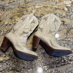 Dan Post El Paso Stitched Cream Leather Square Snip Toe Cowgirl Boot size 7 1/3$45Phoenix, AZ
