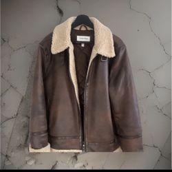 Calvin Klein Brown Leather Shearling-Lined Bomber Jacket Men's M$150Laveen Village, AZ
