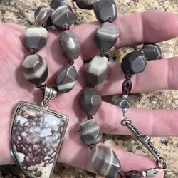Purple Zebra Jasper Necklace & Pendant Beaded Chunky 925 Sterling Silver Heavy$30Phoenix, AZ