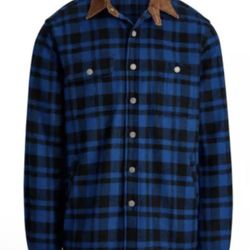Polo Ralph Lauren Men's Buffalo Plaid Flannel Shirt Jacket Blue/Black Size L Corduroy Collar $85Peoria, AZ
