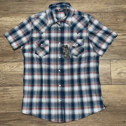 Wrangler Retro Pearl Snap Plaid Western Blue Short Sleeve Collared Shirt Mens M$30Mesa, AZ
