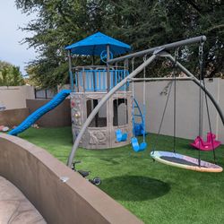Cedar Cove Outdoor Playground Set w/ Tube Slide, Wave Slide, Elevated Clubhouse, Shaded Playhouse, and Swing Set$800Phoenix, AZ