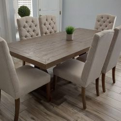 Farmhouse Wooden Dining Table with (2) Button Tufted Parsons Chairs (NEW)$175Gilbert, AZ