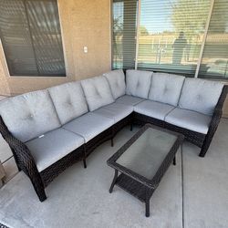 6 person 97inch Outdoor Wicker L-Shaped Patio Sectional with Cushions and Table$400Chandler, AZ