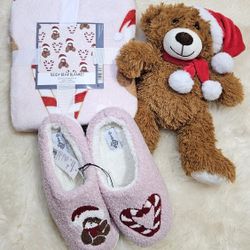 Christmas Gift Bundle Pink Ladies Sherpa Teddy Bear slippers | Candy Cane Teddy Bear Throw & Plush Teddy Bear Toy🧸🍬 🎁✨️$20Phoenix, AZ
