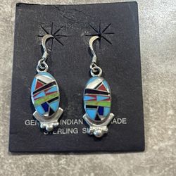 Southwest Sterling Silver Dangle Earrings multi Color Stones Inlaid Stones.$32Mesa, AZ