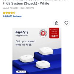 eero - Pro 6E AXE5400 Tri-Band Mesh WiFi 6E System (3 Pack) White$500Mesa, AZ