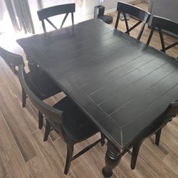 Black And Brown Wooden Kitchen Table 6 X back Chairs 60" l x 44" w x 30" h 18" Leaf$400Chandler, AZ