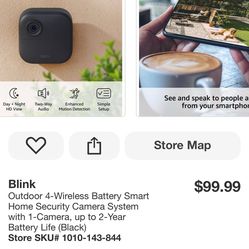 Blink Outdoor 4-Wireless Battery Smart Home Security Camera System with 1-Camera, up to 2-Year Battery Life (Black)$75Glendale, AZ