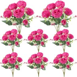 Pack of 8 Artificial Peonies (Deep Pink) — Faux Silk Hydrangea Bouquet for Brides, Weddings, Table Décor, Reusable — Ideal for Dining Rooms, Opening C$25Phoenix, AZ