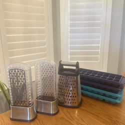 $10 - Great kitchen bundle. Has two Prepara herb keepers, one KitchenAid box grater, and four ice cube trays. Ice trays are dark purple and teal. Ple$10Glendale, AZ