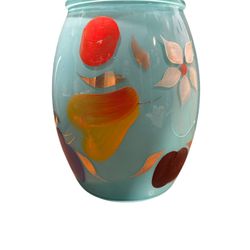 Vintge Turquoise Bartlett Collins Glass Cookie Jar Floral Fruits No Lid$30Phoenix, AZ