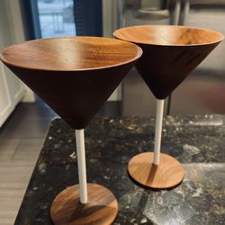 David Rasmussen Design Walnut Wood Set Of 2 MCM Wood Cocktail Martini Glasses- new$20Tempe, AZ