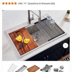 Ruvati Siena 33 in. Drop-in SIngle Bowl 16-Gauge Stainless Steel Workstation Kitchen Sink with Rounded Corners and Accessories (493) V Questions$350Glendale, AZ