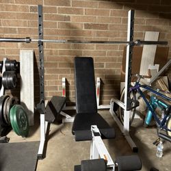 Olympic Bench w/ Olympic Bar, weight rack & 340 lbs in plates$650Phoenix, AZ