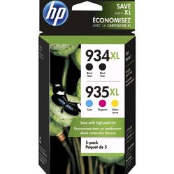 NEW Genuine HP 934XL/935XL Black Color 5-Pack OEM Ink Cartridges Sealed - 2 Black
