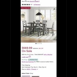 Dining Table Set With 6 Chairs$499Phoenix, AZ