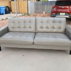 Abbyson Gray Tufted Sofa – Modern Real Leather Couch .$300Phoenix, AZ