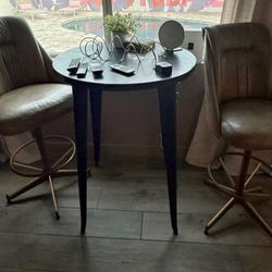 2 Leather Chairs Barstools with a Tall Metal Table$60Glendale, AZ
