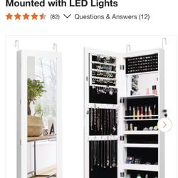 Costway Lockable Mirror Jewelry Cabinet Armoire Organizer Wall Door Mounted with LED Lights$70Phoenix, AZ