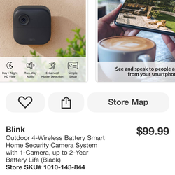 Blink Outdoor 4-Wireless Battery Smart Home Security Camera System with 1-Camera, up to 2-Year$80Glendale, AZ