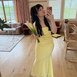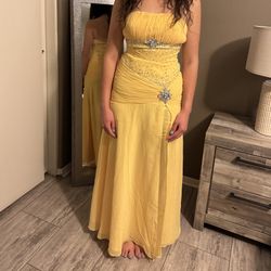 Yellow strapless prom dress with beading and rhinestones, with slit #prom #eveningwear #yellowdress Size 2-4 Xs-S The measurements are: Length 49” B$80Laveen Village, AZ