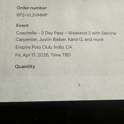 Coachella 3 Day Pass - Weekend 2 with Sabrina Carpenter, Justin Bieber, Karol G, and more.$3,000Phoenix, AZ