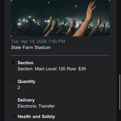 Floor seats. Bruno Mars Tickets$700Glendale, AZ