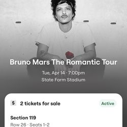 Bruno Mars Tickets $650Phoenix, AZ