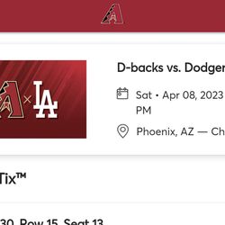 Dodgers @ Dbacks 4/8/23$27Tempe, AZ