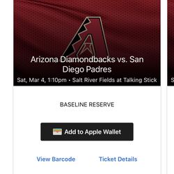 Arizona Diamondbacks Vs Chicago White Sox Tickets$10Scottsdale, AZ