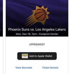 Suns vs. Lakers Game Tickets 12/19$100Phoenix, AZ