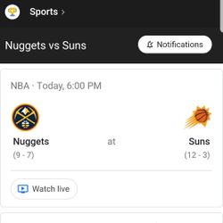 Suns Vs Nuggets With Parking$30Phoenix, AZ