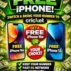 Transfor your number to cricket get a free iPhone 13!!$0Phoenix, AZ