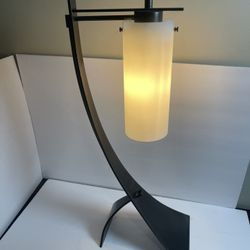 Hubbardton Forge Stasis table lamp in a black finish with an opal glass shade.$900Phoenix, AZ