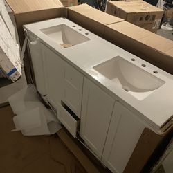 Glacier Bay Bannister 61 in. Double Sink White Bath Vanity with Granite-Look Colorpoint White Cultured Marble Top (Assembled) $525Chandler, AZ