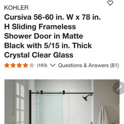Cursiva 56-60 in. W x 78 in. H Sliding Frameless Shower Door in Matte Black with 5/15 in. Thick Crystal Clear Glass$450Glendale, AZ
