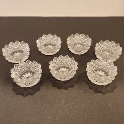 Set of 7 Antique Westmoreland Glass English Hobnail Diamond Pt. Patt Clear Round Bottom Salt Cellar Bowls