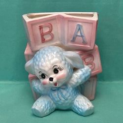 Vintage Lefton ceramic planter blue lamb and baby blocks nursery theme decor$8Phoenix, AZ