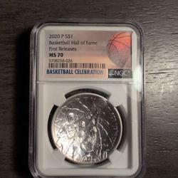 2020 Basketball Hall Of Fame Silver Coin MS70$100Queen Creek, AZ