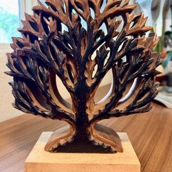 Wooden Tree of Life Sculpture Hand Carved 10" Tall - On Base MCM Wood Beautiful$40Phoenix, AZ