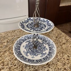 Vintage Blue & White Two-Tier Serving Tray / Dessert Stand $75Glendale, AZ