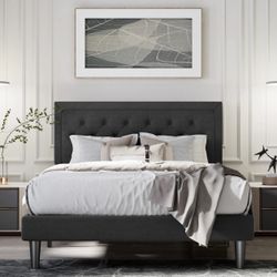 Queen Size Upholstered Platform Bed, Queen Size Bed Frame with Tufted Button Headboard, Sturdy Frame Wooden Slats, No Spring Mattress Required, Noisel$140Chandler, AZ