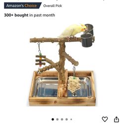 Natural Wood Bird Toys Playground, Bird Cage Accessories, Bird Perches, with Removable Tray and 2 Stainless Steel Cups$16Phoenix, AZ