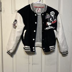 Justice Peanuts Snoopy Varsity Jacket S Girls Black White Abbey Road Bomber$40Phoenix, AZ